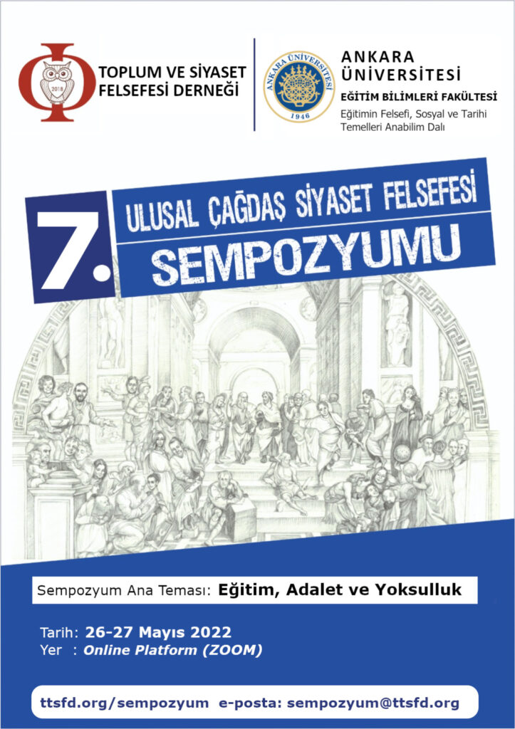 Bu doğrultuda Toplum ve Siyaset Felsefesi Derneği ve Ankara Üniversitesi Eğitim Bilimleri Fakültesi Eğitimin Felsefi, Sosyal ve Tarihi Temelleri Anabilim Dalı işbirliğiyle “Eğitim, Adalet ve Yoksulluk” temalı sempozyum 26-27 Mayıs 2022 tarihlerinde gerçekleştirilecektir. Sempozyumun teması disiplinlerarası tartışmalara açıktır. Bu kapsamda Eğitim, Felsefe, Hukuk, Siyaset Bilimi, Sosyoloji, Psikoloji, Uluslararası İlişkiler ve Sosyal ve Beşeri Bilimler alanlarından katılımlar değerlendirilmeye alınacaktır.
